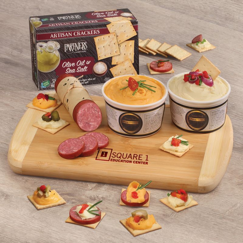 Gift employees a tasty holiday treat, including a bamboo charcuterie board, gourmet meat and cheese, and complimentary cabernet, wine tumblers, or stemware branded with a cheerful holiday message.