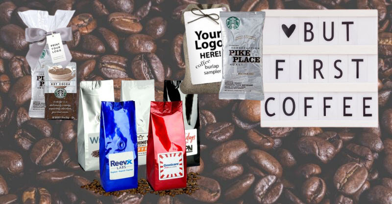 From full size bags of gourmet coffee to single serve mug stuffers, we can customize any bag of coffee with your logo or message. We can even customize a jute bag with Starbucks Coffee!